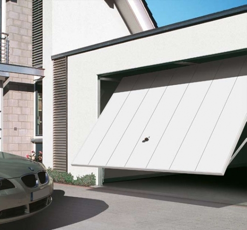 There are two main types of up and over doors; Canopy, the entry level door for manual operation with side arms and top springs that lift the door and leave around one third of the open door outside the garage. Retractable, which has side sprung arms to swing up the bottom of the door fully into the garage as the top runs back on rollers in tracks along the ceiling. Retractable up and over doors can be supplied as manual doors but are ideal for electric automatic operation.